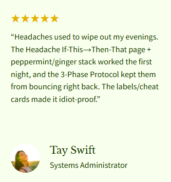 Immediate proof: Use the If-This→Then-That flowcharts (Headache, Cold, Fatigue, Migraine) and follow the 3-Phase Protocol so relief sticks.